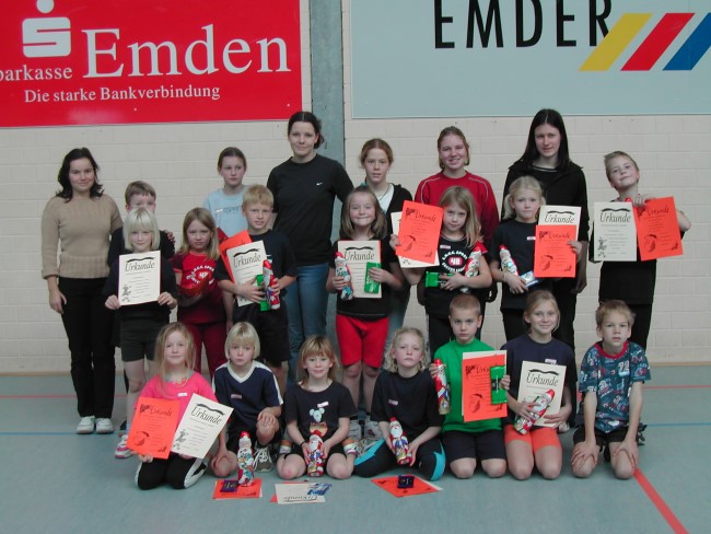 | 13.12.03 | Bilder vom Nikolaussportfest in Emden am 06.12.03 Gitta besuchte am vergangenen Wochenende das erste Nikolaussportfest des BW Borssum. Bei dieser Veranstaltung ging es hauptsächlich um den Spaß für die sechs bis neun Jahre alten Jungen und Mädchen. Die waren tatsächlich mit einer grandiosen Begeisterung bei dieser “alternativen” Veranstaltung dabei. Die Überraschung war perfekt nachdem jeder kleine Athlet eine Urkunde und einen Schokoladenweihnachtsmann bekommen hatte. Das ist genau der richtige Weg um unsere “Kleinen” zu motivieren und für die Leichtathletik zu begeistern. Es muss nicht immer nur um Titel, Weiten und Zeiten gehen, auch wenn dieses einige Vereine anders sehen. Wir danken dem BW Borssum, insbesondere dem Organisator der Veranstaltung: Lutz Spormann. Hier nun einige Bilder der Veranstaltung: ![]() |