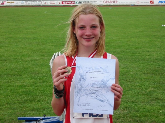 | 11.07.03 | Maria Harms qualifiziert sich für die Deutschen Meisterschaften Im Block Sprint/Sprung hat sich Maria für die Deutschen Meisterschaften qualifiziert. Sie erzielte eine Punktleistung von 2.585 Punkten. Ihre Leistungen beim Wettkampf in Warsingsfehn: 100 m – 13,5 Sek.; 80 m Hürden – 12,5 Sek.; Hochsprung – 1,60 m; Weitsprung – 4,90 m; Speerwurf – 23,51 m. An der Veranstaltung am Mittwochabend nahmen ausserdem noch die Vereine Vfl Germania Leer und der SV Georgsheil teil. Die weiteren Ergebnisse werden am Samstag ins Netz gestellt. |