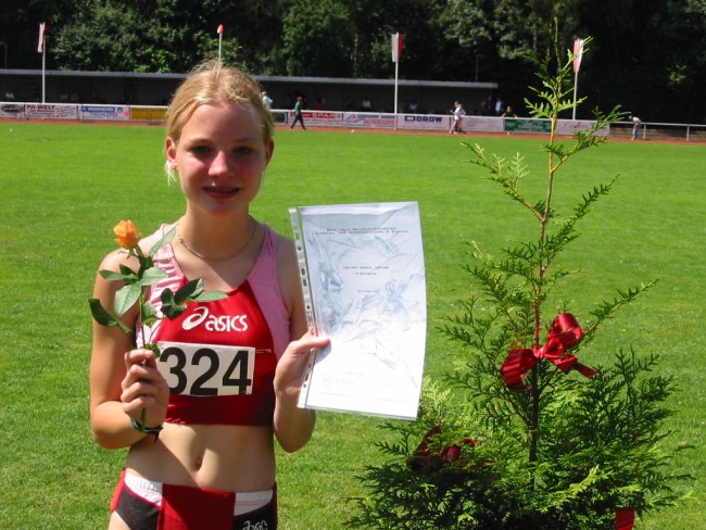 | 07.08.03 | Nominierung für Vergleichskampf Für den Vergleichskampf der Norddeutschen Leichtathletikverbände am 06.09.03 in Bremen wurde Maria Harms vom Niedersächsischen Leichtathletikverband nominiert. Die derzeit beste Hochspringerin des Landes soll die Farben des NLV in ihrer Spezialdisziplin tragen. |