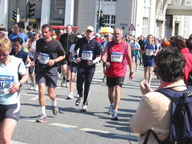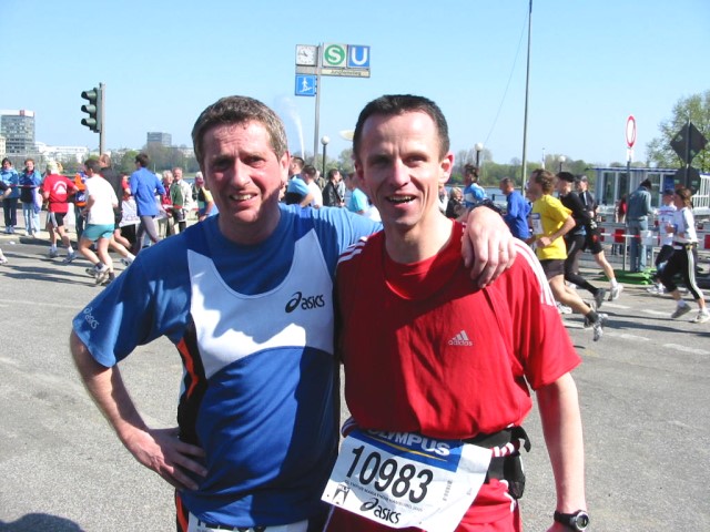 26.04.05 | Olympus Hamburg Marathon Beim 20. Olympus Marathon in Hamburg gingen zahlreiche Athleten des SV Warsingsfehn an den Start. Bei herrlichem Wetter mischten sich fünf SVW’ler unter die rund 20.000 Marathonis. Bei den Männern siegte der zweite der WM in Paris Julio Rey aus Spanien in 2:07:38 Std. Er verfehlte seinen eigenen Streckenrekord um nur 12 Sekunden. Bei den Frauen siegte die Debütantin und dreimalige Crossweltmeisterin Edith Masei aus Kenia. Ihre Siegerzeit 2:27:06 Std. Hier nun die Ergebnisse: Egon Harms 3:39:18 Std. Platz 4.275 in M45 Platz 633 Otto Keplin 3:54:35 Std. Platz 7.020 in M55 Platz 287 Thomas Willers 3:54:35 Std. Platz 7.021 in M40 Platz 1.487 Martin Boekhoff 4:54:44 Std. Platz 15.314 in M50 Platz 1.307 Friedhelm Saathoff 5:20:30 Std. Platz 16.864 in M35 Platz 2.876 Friedhelm lief den Marathon als Begleiter eines Freundes. Im Bild unten sind Friedhelm (in rot) und Freund, sowie Martin zu sehen. ![]() ![]() |