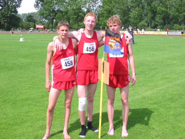 25.04.05 | Landesmeisterschaften Langstaffeln in Sulingen Am Sonntag wurden die Landesmeisterschaften der Langstaffeln ausgetragen. Vom SVW gingen die Schüler A über 3 x 1.000 m an den Start. Manuel Horn, Matthias Krieg und Jan-Hiebo Busch wurden in der Zeit von 9:44,9 Min. siebter. Steffen Wiechmann, Jan-Gerhard Onken und Heinz-Helmut Onken konnten einen fünften Platz in der Jugend A Wertung belegen. Die Zeit betrug 8:18,8 Min. und damit lagen sie nur ganz knapp hinter dem TuS Eintracht Hinte. |
