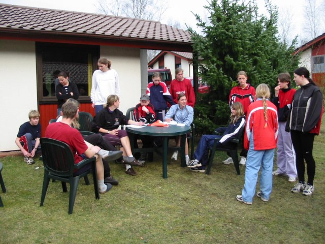 17.03.05 | Trainingslager 2005 Am morgigen Freitag startet das 15. Trainingslager und wieder geht es nach Uelsen in der Grafschaft Bentheim. Es werden 22 Athleten dabei sein und sich auf die neue Saison vorbereiten. Neben 10 Trainingseinheiten steht auch viel Spass auf dem Programm. Einige der Aktivitäten werden sein: Schwimmen, Tagesausflug nach Enschede, Häuserwettkampf, Spielen, Spieleabende, Geburtstag feiern von Maria und und. Wie immer empfangen wir gerne ein Fax von Euch. Die Faxnummer lautet: 05942/1588. |
