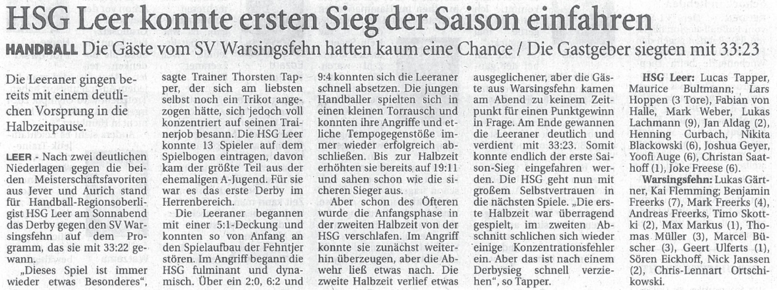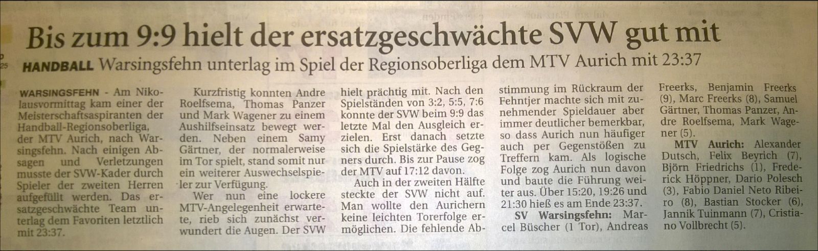 SV Warsingsfehn – MTV Aurich 23:37 (12:17)