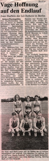 LANDESMEISTER 3 x 800 m Staffel mit Claudia Boekhoff, Tomke und Maike Gottschlich in Warsingsfehn