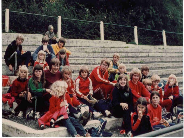 Bezirksrekord durch die Dreikampf-Mannschaft mit Martina König, Maike de Riese, Sylvia Schilling, Helma Trettin und Ute Ley